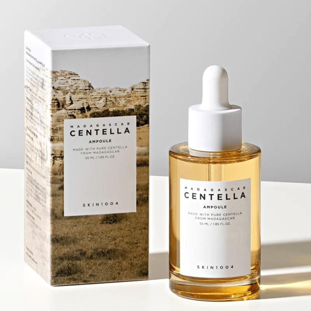 آمپول سنتلا ماداگاسکار، محصول شاخص برند کرهای SKIN1004. برندی که با شعار «آنچه به پوست میزنیم باید خالص باشد» شناخته میشه.